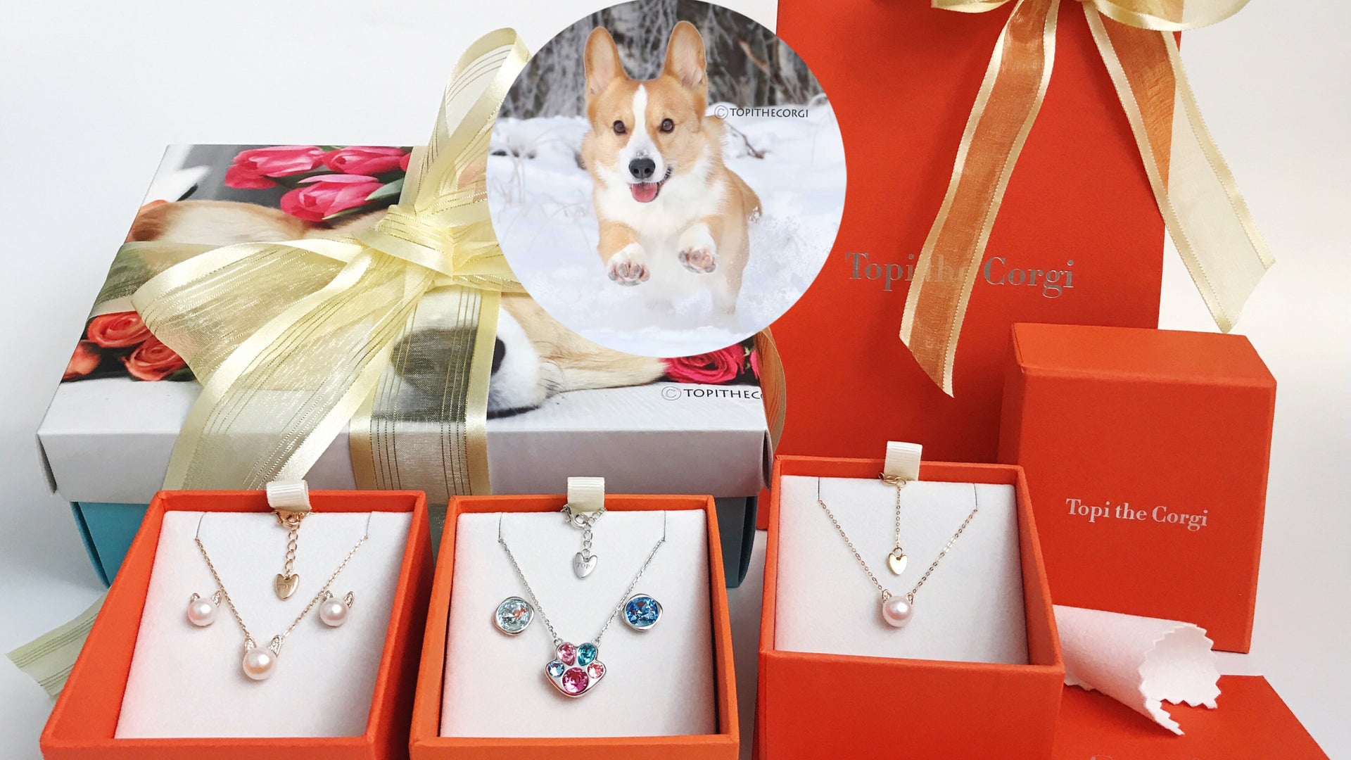 We are honored to create jewelry inspired by Topi the Corgi